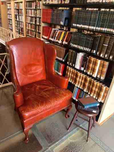 I would expect to find her reading on the 5th floor. And Rev. Casaubon would be studying the books in the King’s Chapel Library collection, turning the pages, and inhaling the accumulated dust that has built up since 1698 when they were shipped to Boston.